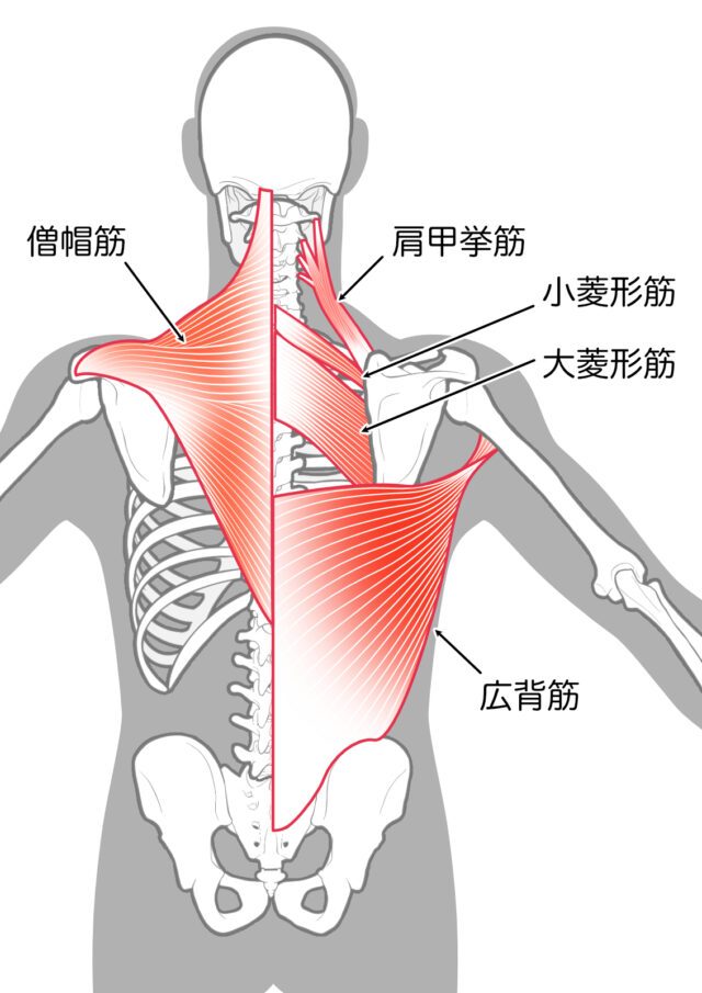 下部僧帽筋:肩甲骨を下げ、肩をスムーズに回転させる