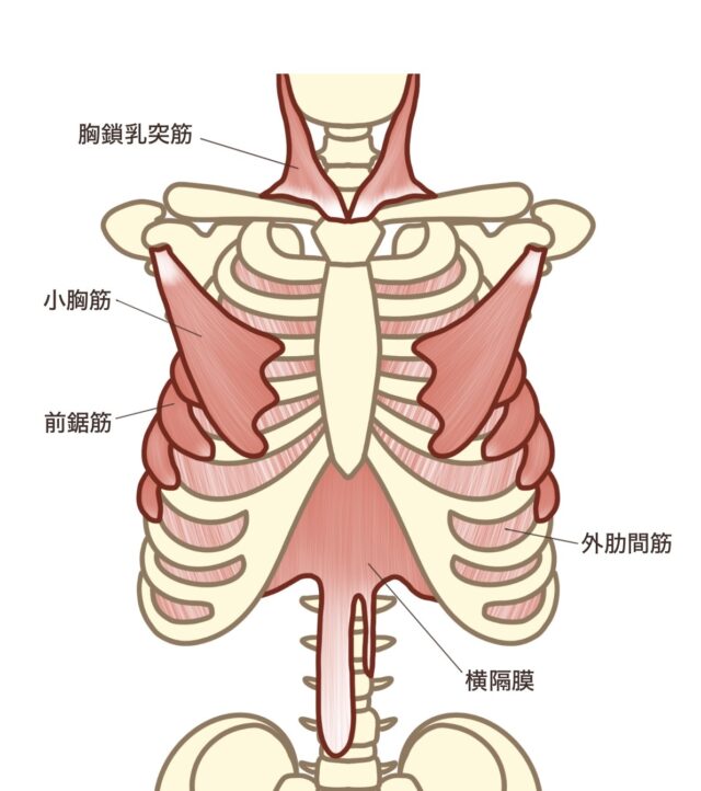 デスクワークやスマホ操作で前傾姿勢が続くと、肩が前に出て、胸郭の動きが制限されます。